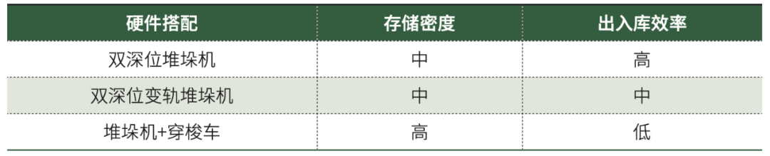 表1 三种硬件解决方案组合所对应的存储密度和出入库效率 系统规划中考虑的主要因素包括: